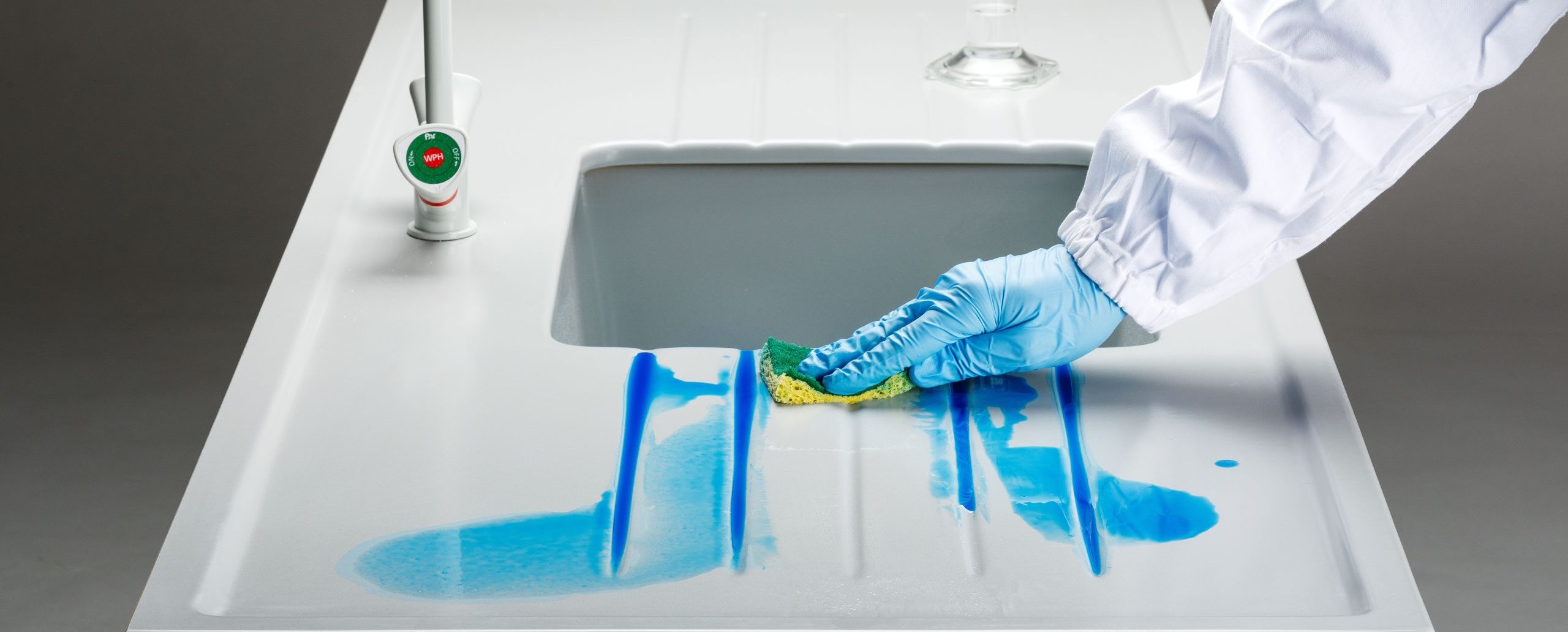 The single-firing glazes ensure that the work surface is easily cleanable using detergents with low environmental impact, while still providing effective and long-lasting microbiological disinfection.